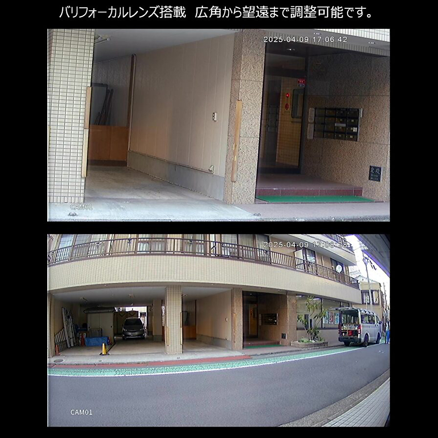 バリフォーカルレンズ搭載 焦点距離2.8~12mmのバリフォーカルレンズレンズを搭載しており、広角から望遠までの撮影に対応します。