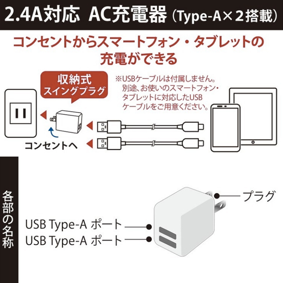 | 1ポート最大出力 | 12W(DC5V, 2.4A) |