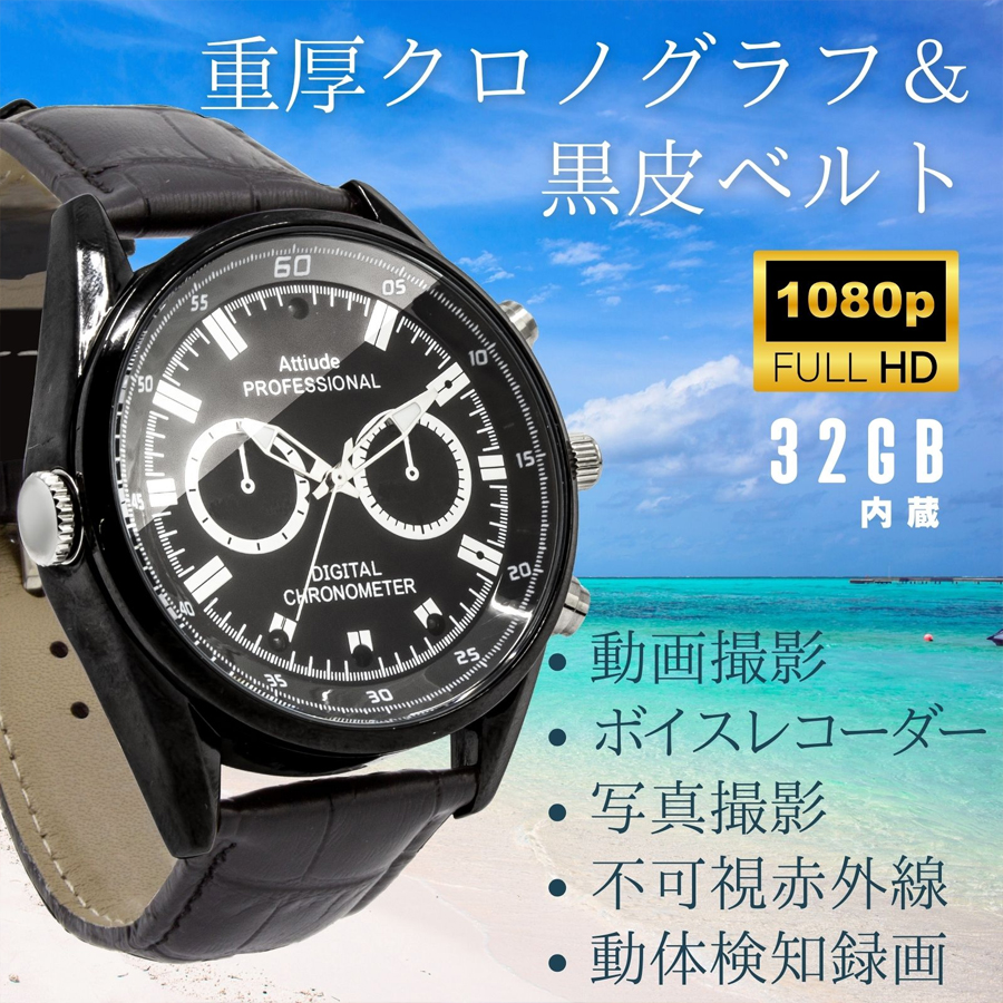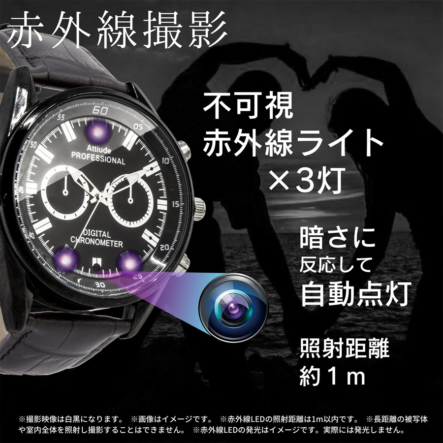 TK-WAT-30(Noir)(ノワール)の概要 TK-WAT-30(Noir)(ノワール)は、スパイカメラ(偽装カメラ)(擬装カメラ)を多く手掛ける匠ブランドのフルHD(1920×1080)録画対応の腕時計偽装(擬装)小型カメラです。録画解像度はフルHD(1920×1080)に対応、記録媒体に32GBの内蔵メモリを採用しており、ご購入後すぐにご利用が可能です。ブラックのカラーリングに皮ベルトでシックな装いを演出します。【その他のおススメ小型カメラ(スパイカメラ)(偽装カメラ)はコチラをご覧ください】