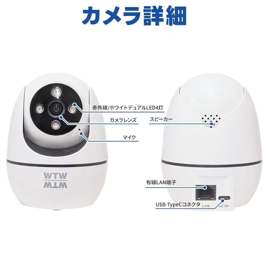 WTW-T1(みてるちゃんT1)の概要 WTW-T1(みてるちゃんT1)は、国内の大手防犯カメラメーカー塚本無線社製の500万画素パン・ティルト機構搭載ネットワーク防犯カメラです。カメラを撮影したい方向に動かすことができるパン・チルト機能も搭載しており、1台でより広い範囲をカバーすることが可能です。記録媒体にmicroSDカードを採用しており最大で128GBまで対応します。