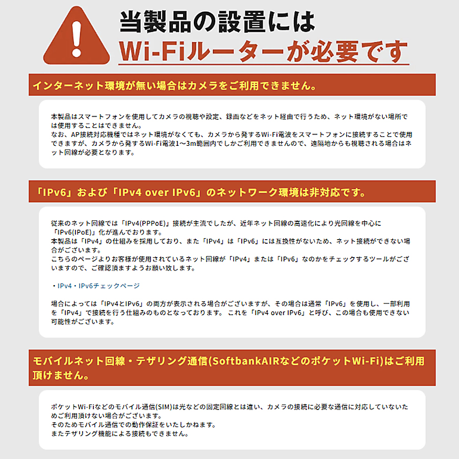 - ネット接続はIPv4のみの対応となるため、IPv6接続ではご利用いただくことが出来ません。